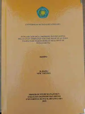 | Judul | Pengaruh Harga, Promosi Dan Kualitas Pelayanan Terhadap Volume Penjualan Pada Usaha Tahu Bakso Berkat Shalawat Di Tenggarong / M. Rafli |