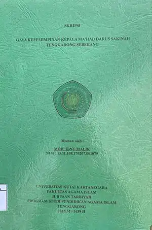 | Judul | Gaya kepemimpinan kepala Ma’had Darus Sakinah Tenggarong Seberang / Moh Ibnu Malik |