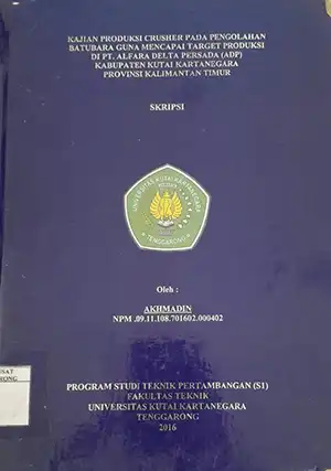 | Judul | Kajian Produksi Crusher Pada Pengolahan Batubara Guna Mencapai Target Produksi Di PT. Alfara Delta Persada (ADP) Kabupaten Kutai Kartanegara Provinsi Kalimantan Timur / Akhmadin |