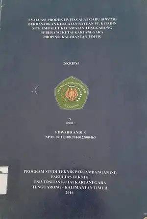 | Judul | Evaluasi Produktivitas Alat Garu (Ripper) Berdasarkan Kekuatan Batuan PT. Kitadin Site Embalut Kecamatan Tenggarong Seberang Kutai Kartanegara Provinsi Kalimantan Timur / Edward Andi S |